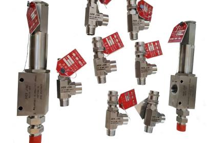 设定压力是有流体流出时的上游压力。室温下,初始卸荷完成后,每个阀门的设定压力在± 5 % 范围内可重复。